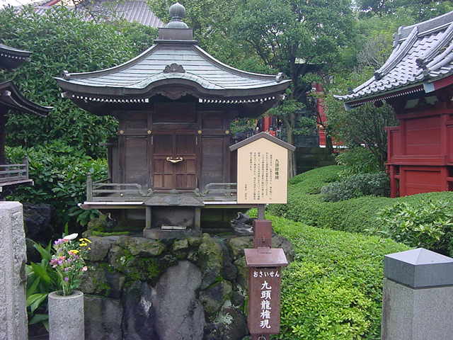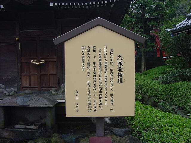浅草寺とその周辺にはさまざまな石碑や遺構が残されていますが、その一つです。仏教を守る竜神を祀っていて、浅草寺の守護神の役割を果たしています。もともとは長野県の戸隠山の地主神だったそうです。この周辺には小さい遺構が多いですが、どれも重要な意味があって、参拝していて飽きません。