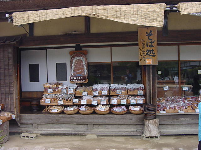 南会津の山間の宿場で、街並みが保存されている「大内宿」の中にある飲食店です。蕎麦を目的に大内宿に来る人も多いので、店内は多くの人でにぎわっていました。店頭ではお土産品の販売もあって、ここを眺めている時間も楽しいです。