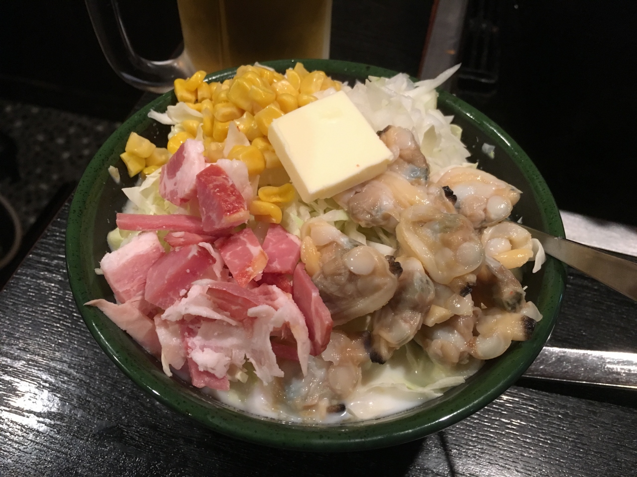 いろいろ種類はありましたが、一番想像のつかなかったクラムチャウダーもんじゃを注文。