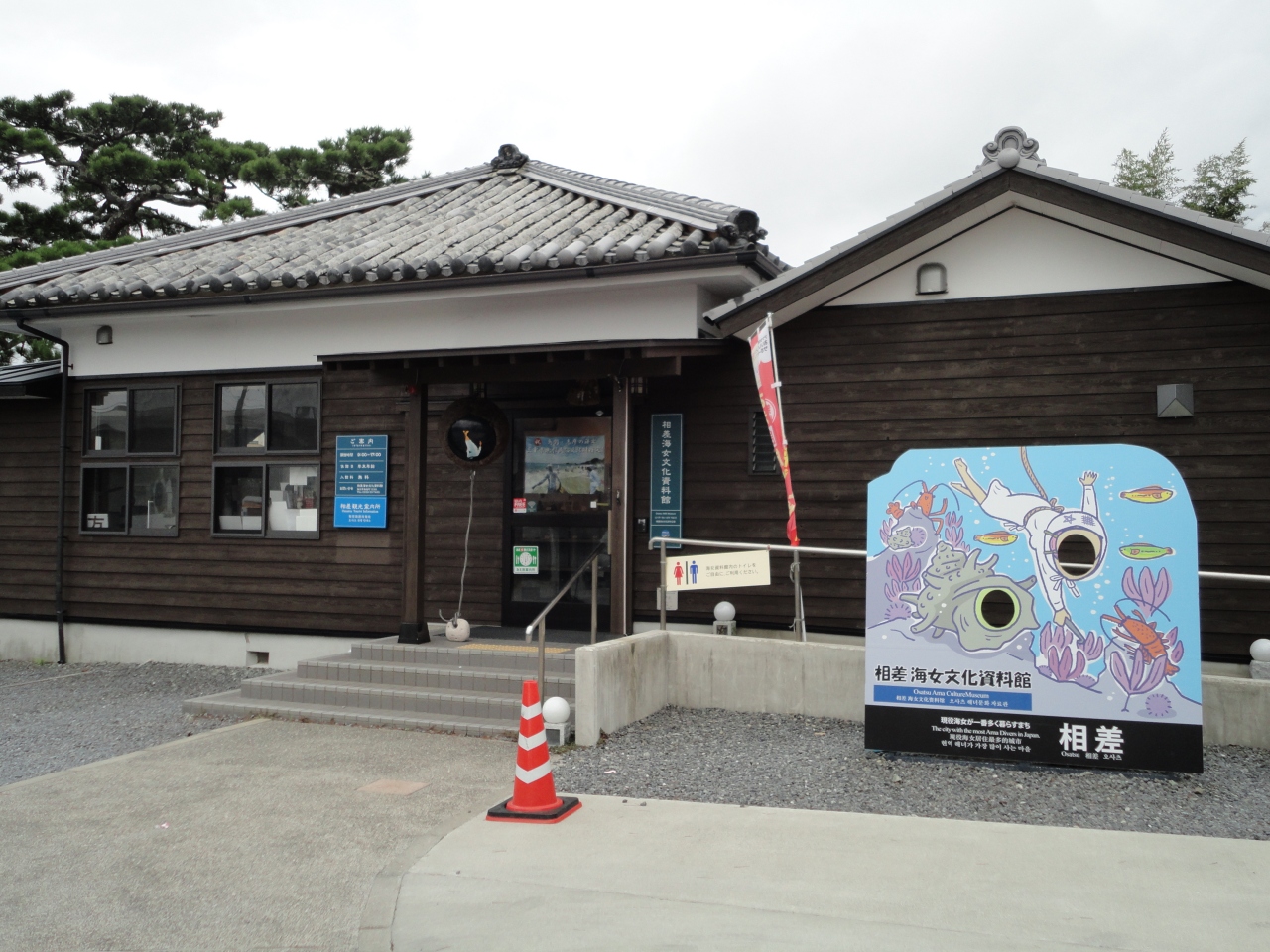 石神さんへ行く前に必ずこの資料館を訪れておくべきです。石神さんを参拝する人はほとんどがこの資料館を訪れて知識を得ておくようです。石神さんの境内にはトイレが見当たらなかったので、この資料館のトイレで用を済ませておくと良いでしょう。入り口から入ると、多くの芸能人が石神さんを訪れた時の記念写真が展示されています。私が好きな歌手、坂本冬美さんの写真もありました。海女さんよりも石神さんの写真が目立っています。何と言っても入館料が無料なのがうれしいです。駐車場は12・3台くらい駐車できるスペースで無料です。ここに車を駐めて石神さんへ徒歩5分位で行けます。石神さん付近で無料で駐車できるのはこの資料館だけだと思います。