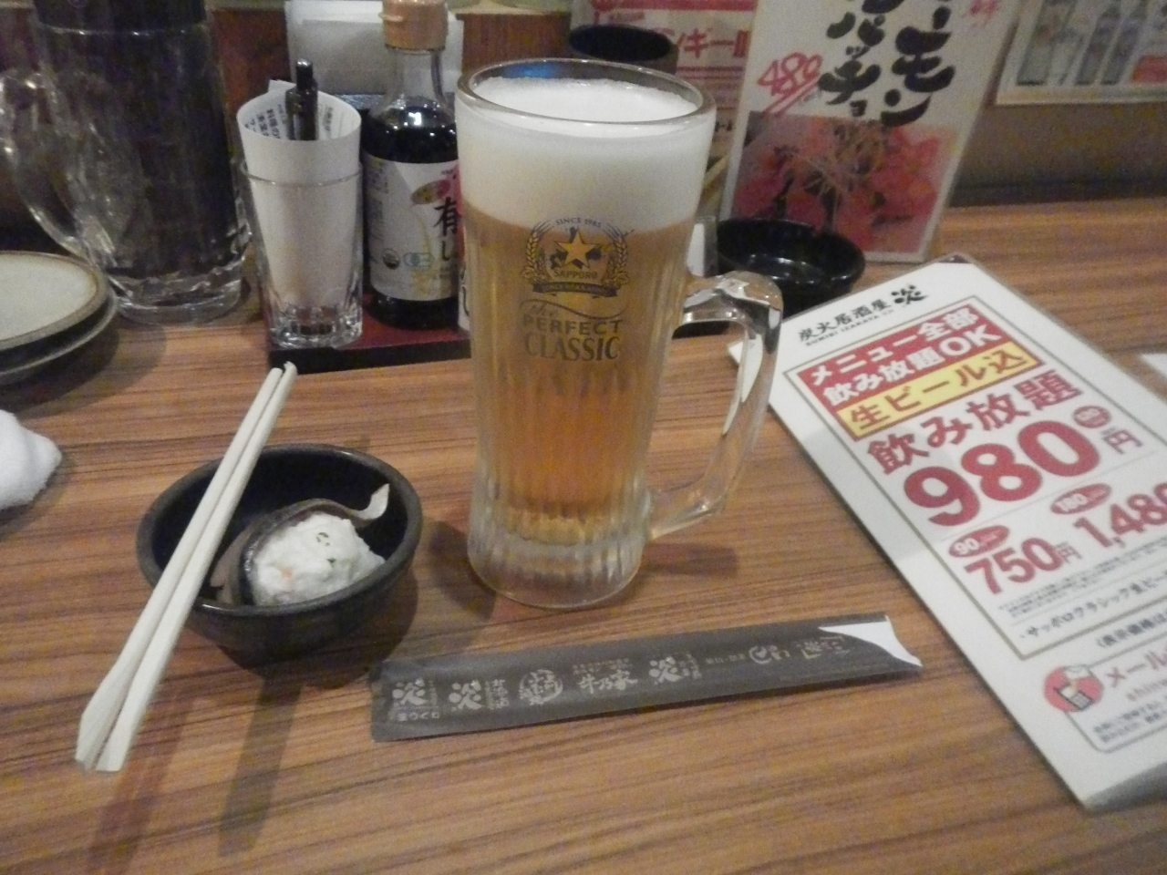ビールをたくさん飲みたかったので飲み放題がある店を探す。ここは2時間飲み放題で980円と安かった。
