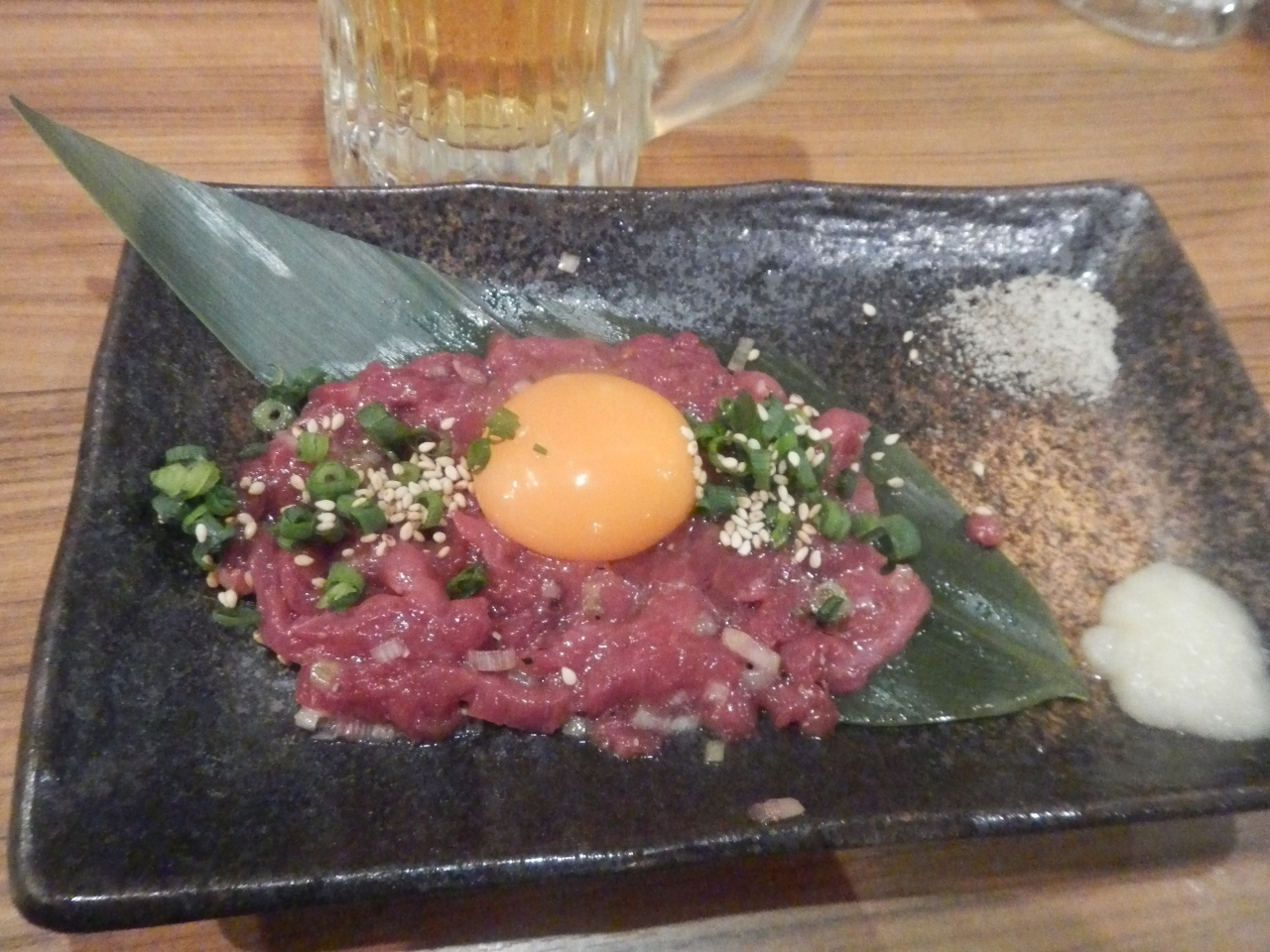 ちなみにレシートを見るとお通し300円、刺身3点盛990円、塩ユッケ590円、ジャがバタ390円+税。値段的にはリーゾナブルだ。味は特筆すべきものはないが、悪くはない。