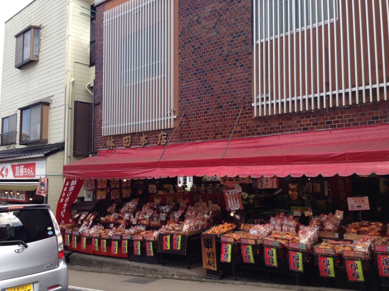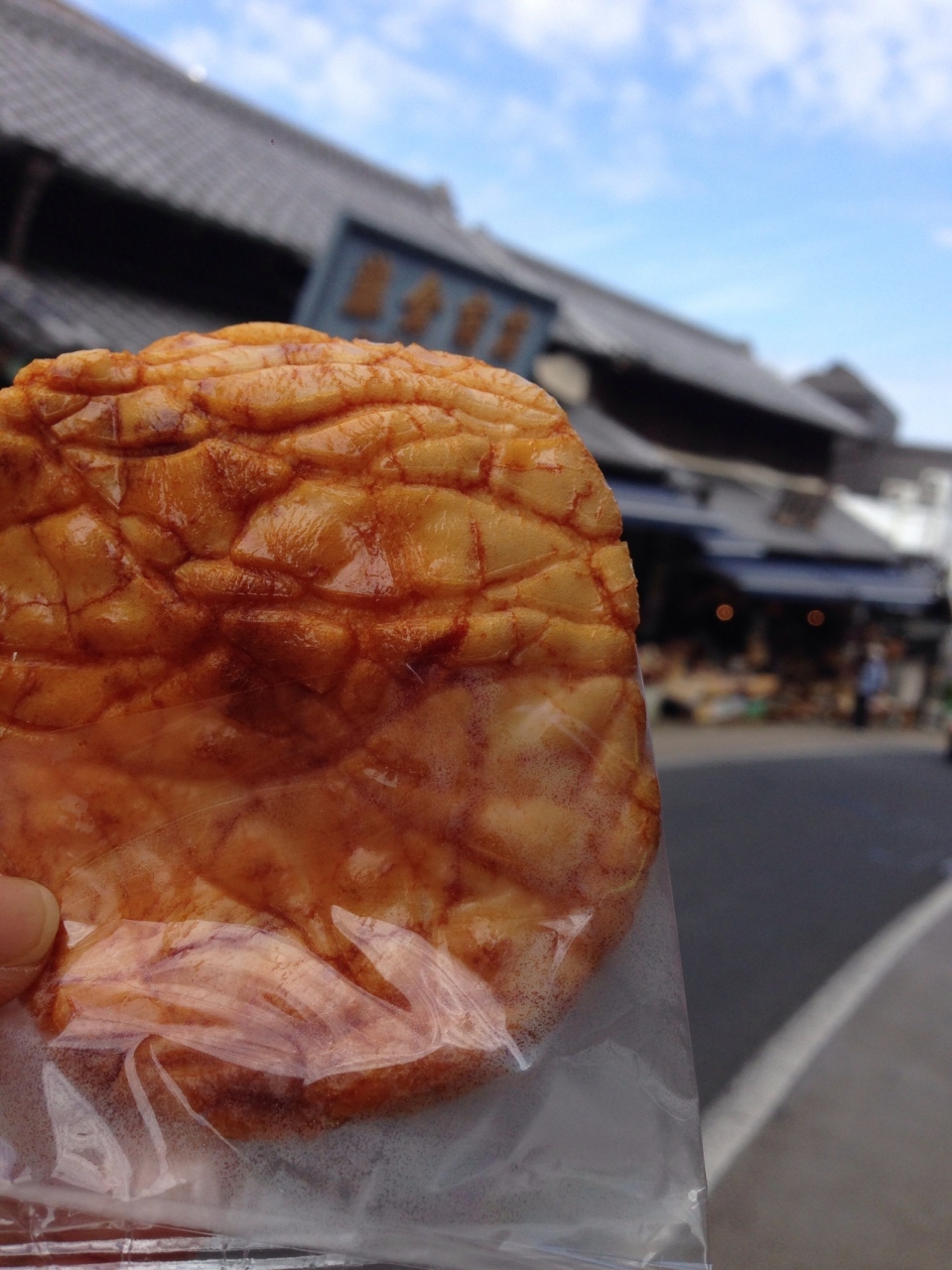成田山参道といえば うなぎとおせんべいを思い出します。うなぎは食べられないので おせんべいは絶対食べてみたかった。 隅から隅までお煎餅だらけのお店を発見!しかも店先で焼いてる。