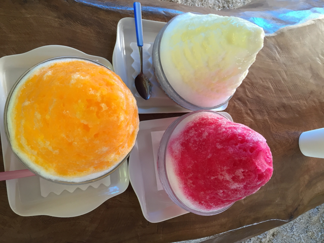 水牛に乗っていたときに、ガイドの方がこちらを紹介され、このお店をしりました。水牛観光を終え、自転車で島内を走りまわり、ほってった身体を冷やすのにこちらのお店により、かき氷をいただきました。出てきたかき氷の大きさにまずびっくり。そして食べた際の食感にまたびっくり。量もてんこもりで、氷もふわふわ。口当たりがとてもなめらかで、量が多くてもすっかり食べきってしまいました。シロップの種類もたくさんあり、家族でいろんな味を注文し、楽しみました。またその価格にもびっくり。この量で、観光地ながらとても良心的な値段に、驚くとともに、ほっこりした気分にさせてくれました。絶対に竹富島に行ったときには、こちらに寄ってほしいです。