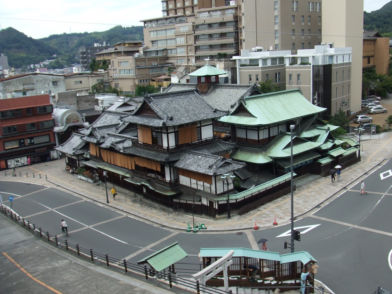 道後温泉本館南側の冠山駐車場にある40mの遊歩道。道後温泉の裏手から階段を登って行きました。20mの高さから道後温泉本館と周辺を見渡すことができます。空の散歩道なんてネーミングほど素敵なものではないけれど、絶好の撮影スポットです。