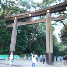 JR原宿駅で降りて神宮橋を渡ってすぐのところに明治神宮の入り口があります。