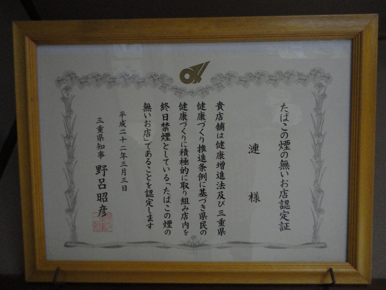 遊覧船で鳥羽湾めぐりをした後で、昼食をとるためにこちらのお店を初めて利用しました。20台ほど駐められる無料駐車場がお店の前にあります。お店の入り口には、午後一時でしたがすでに8人ほどのお客さんが並んで腰掛けていました。周囲を見渡すと、このお店の雰囲気がよくわかります。三重県知事から贈られた禁煙の店の表彰状が飾られています。お店のパンフレットなども置かれています。奥の方を見ると熱帯魚が泳ぐ水槽も見えます。20分ほど待っていて、テーブル席に案内されました。お勧めを店員さんに尋ねたら、一日限定20食の大海老フライ定食は売り切れましたとのこと、海老フライ定食を勧められてノンアルコールと共にオーダーしました。海老フライが4枚、ドドーンとお皿に乗っています。海老だけの厚みは1センチは越えています。長さは尻尾まで入れると15センチほど。箸で海老フライを持つとやたらに思いです。むっちりしていて歯触り・味共に抜群です。2枚だけでも十分なのにまだ2枚も残っています。特製タルタルソースとご飯はお代わりできます。備え付けの普通のソースよりはタルタルソースをつけると、海老の味がよくわかります。家内はに志き御膳をオーダーしました。こちらは海老フライに国産牛陶板焼きです。家内から数枚もらって食べた牛肉は柔らかく肉汁が溢れていてとてもおいしかったです。高めの料金を払うだけの価値は十分あると思います。また、鳥羽観光に来た時はこのお店を利用します。