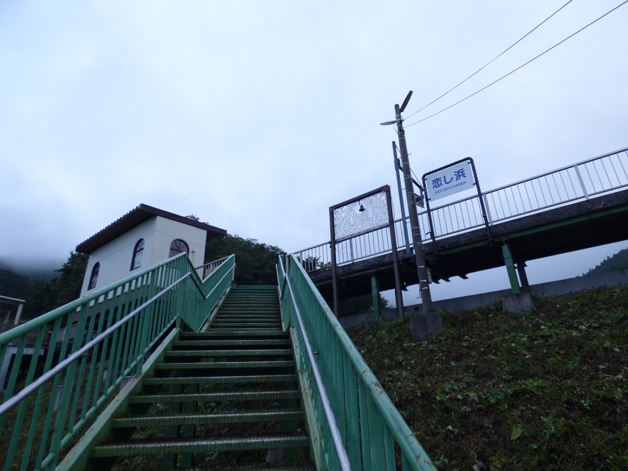 三陸鉄道の南区間。盛駅から釜石駅までを結びます。JR大船渡線はバスによって復旧しましたが、三陸鉄道は鉄道が全線開通しました。写真は恋し浜駅ですが、険しい海岸線が続く区間で、リアス海岸を実感することができます。