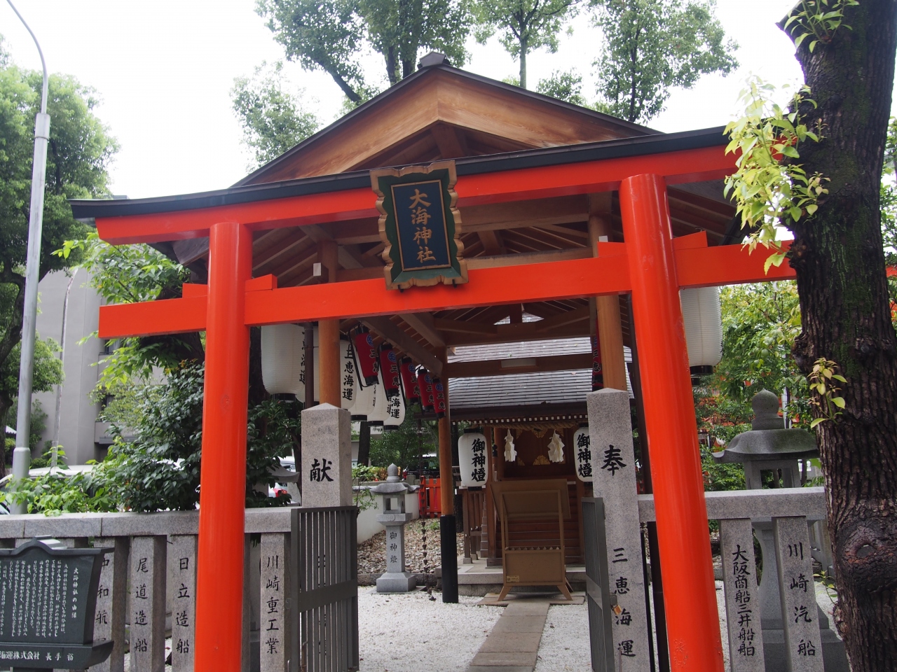 境内南側、二の鳥居を入ってすぐ左側に位置しています。右手には松尾神社があります。交通安全の神は各地で目にしますが、海上安全の神はあまり聞いたことがないですね。神戸らしいといえば神戸らしいといえますね。