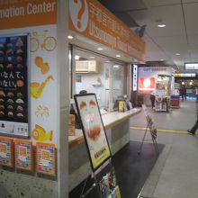 改札出で、改札階の西側にあります、駅前の案内から、バス、レンタカーなど気軽に案内してくれます。いつも人がいるので安心です。駅前にしては、ちょっとブースでいろいろみないのが残念です、全て対面での問い合わせになります。