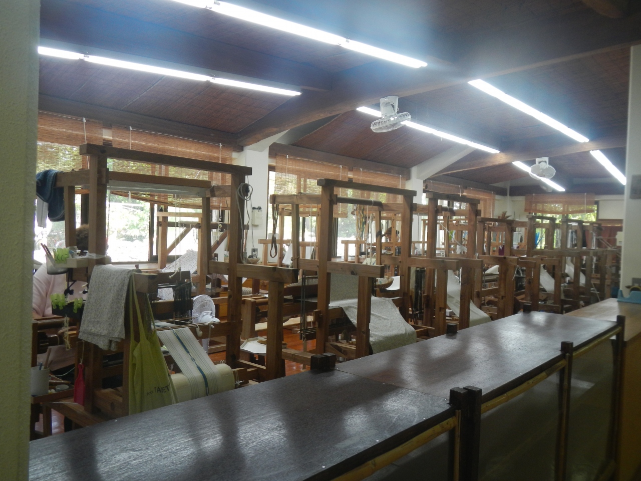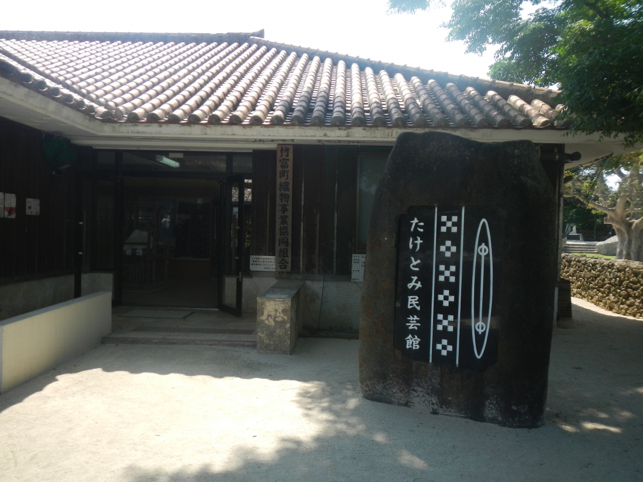 竹富町織物事業協同組合の施設。島の伝統の織物を紹介している。染めから織りまでの工程の説明の説明の展示やまた布を織るところの見学や織りの体験などもできる施設だ。私は時間がなかったにで簡単に展示を見学する程度で、体験はしなかった。