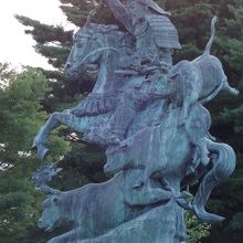 小田原駅の西口(新幹線側)ロータリーにあります。高さ約6mのたいへん大きく立派な銅像です。北条早雲のが1495年、小田原奪取を成し遂げた、牛の角に松明を付け、早雲軍の後詰の様に見せかけた策「火牛の計」をモチーフにしているそうです。早雲なんと64歳の雄姿です!小田原城とは反対側ですので見落とさないようにしてください。
