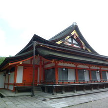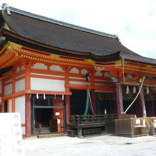 今日は京都・八坂神社を散策しています。そしてその中心となる「本殿」に来ています。本殿は、江戸時代前期の1654年で建立されました。本殿と拝殿がひとつの屋根となった珍しい建築物で、境内中心付近に堂々と建っています。中では一番大きな建物ではないでしょうか。現在は国の重要文化財に指定されています。また境内には数多くの社(やしろ)や史跡、見どころがありますので時間をとって散策されることをお薦めします。その後は円山公園への散策です。さぁー行きましょう。