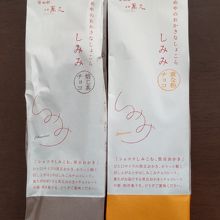 こちらで~ショコラしみこむ、黒豆おかき~の『しみみ』をお土産にしました。