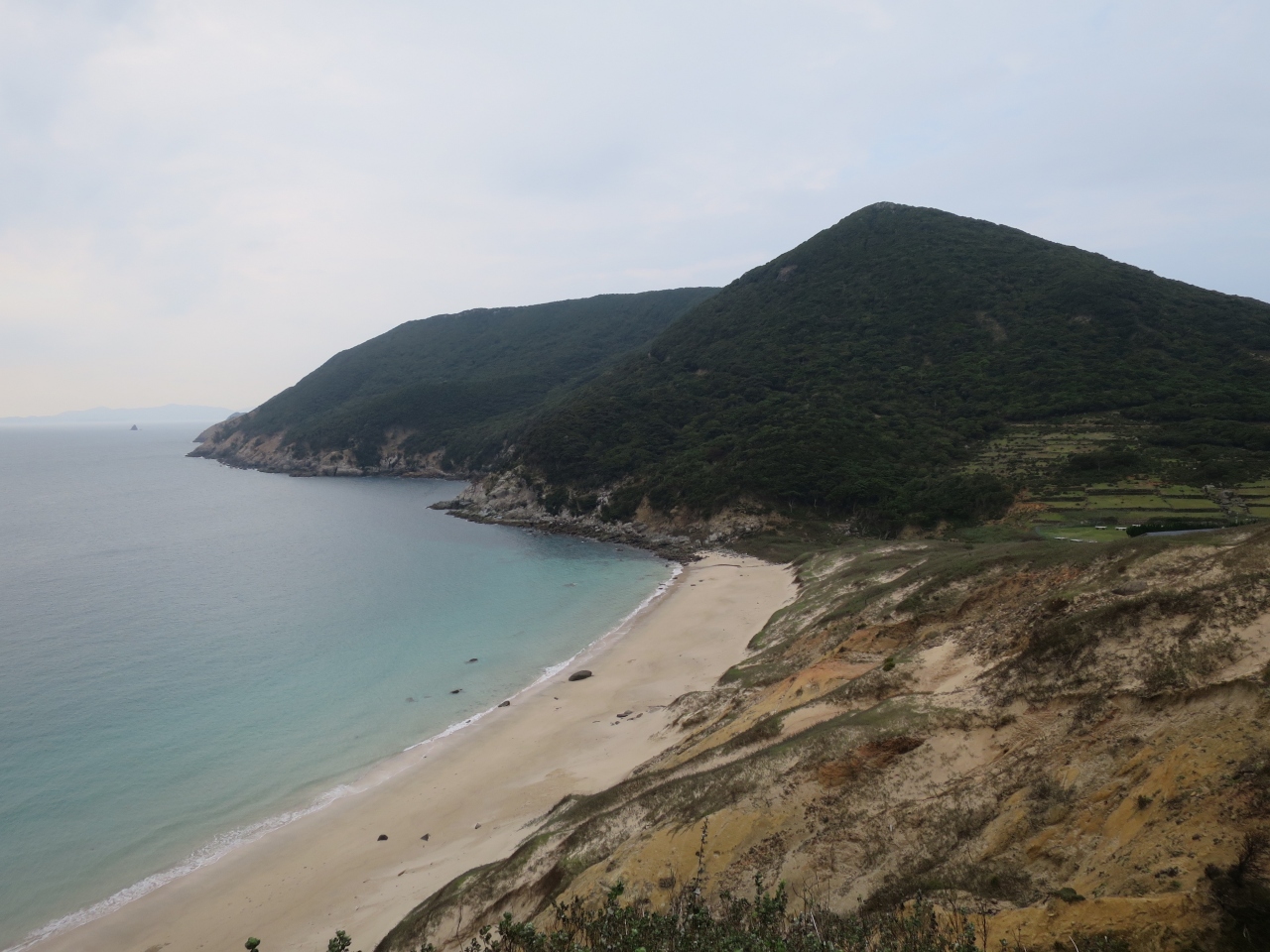 この海水浴場があるのは小値賀島の東に浮かぶ無人島の野崎島です。小値賀島からは日に2往復しか無い船に乗って港から山道を越えてさらに斜面を下らないとたどり着かないので、なかなか気軽に行ける砂浜とは言えませんが、その分あらされることもなく人も少なく静かで美しい砂浜を堪能できます。