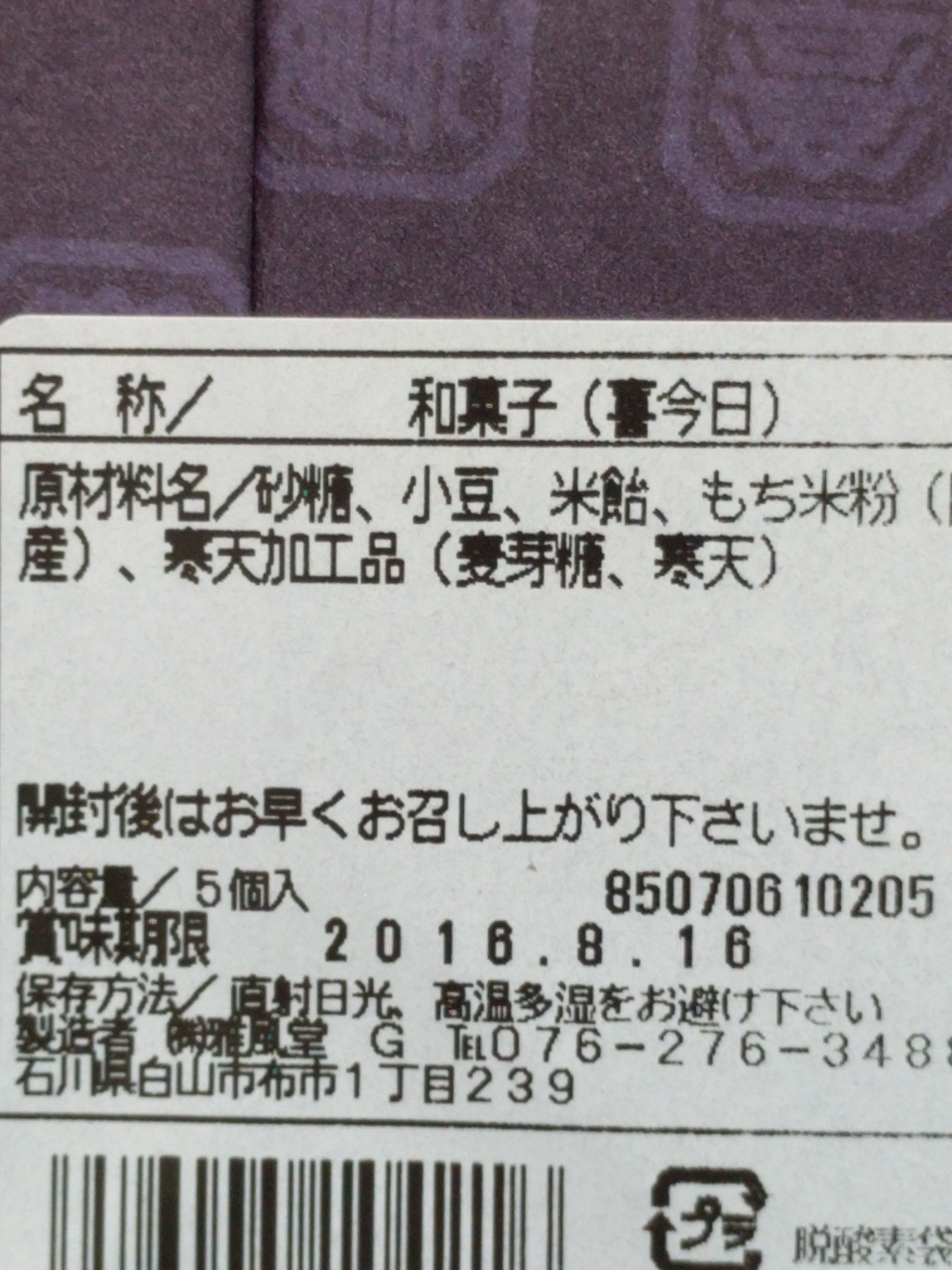 JR金沢駅構内の『あんと(金沢百番街)』に“御菓子司 雅風堂”があります。