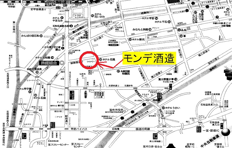 石和温泉駅を降りて南側に約10程度歩くと、モンデ酒造山梨工場があります。