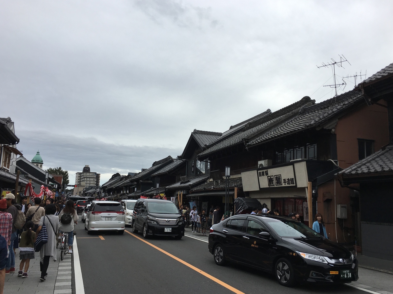 川越観光の中心で、両サイドに明治初期に建てられた蔵造りの建屋が連なる通りです。