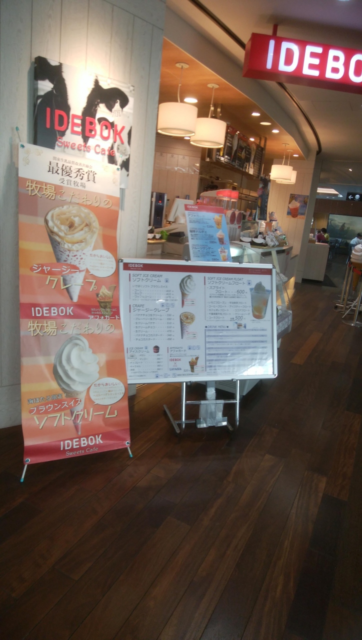 海ほたるパーキングエリアの駐車場から飲食・物販・サービス施設が集まっているフロアに上がって、4回フロアの南側のソーンの入口を入るとすぐ右手にこちらのショップがあります。カウンタースタイルのアイスクリーム、ソフトクリームのお店でよくある形態です。自分はソフトクリームを食しましたが、ミルク感が非常に強いお味です。コーン、ワッフル、カップの3種類から選んで、ソフトを作ってもらえます。お値段は残念ながら高速道路のパーキングエリア価格で高めです。