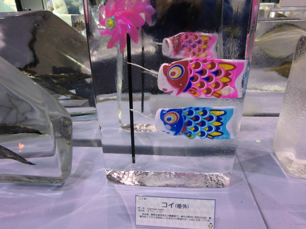 個人的には、水族館にこいのぼりが「コイ(番外)」として氷漬けになっていたのがツボでした。