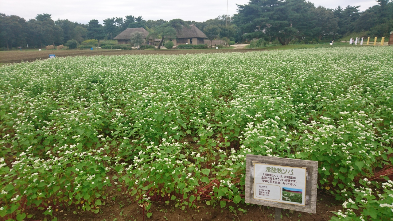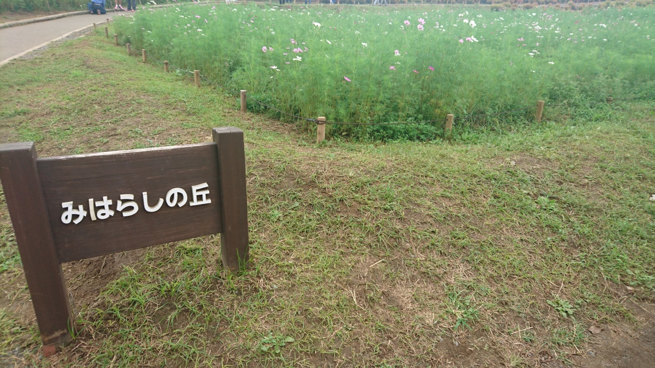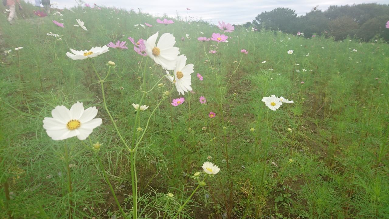 コスモスとそばの花、紅葉が始まってきたコキアを見ながらみはらしの丘を散策。