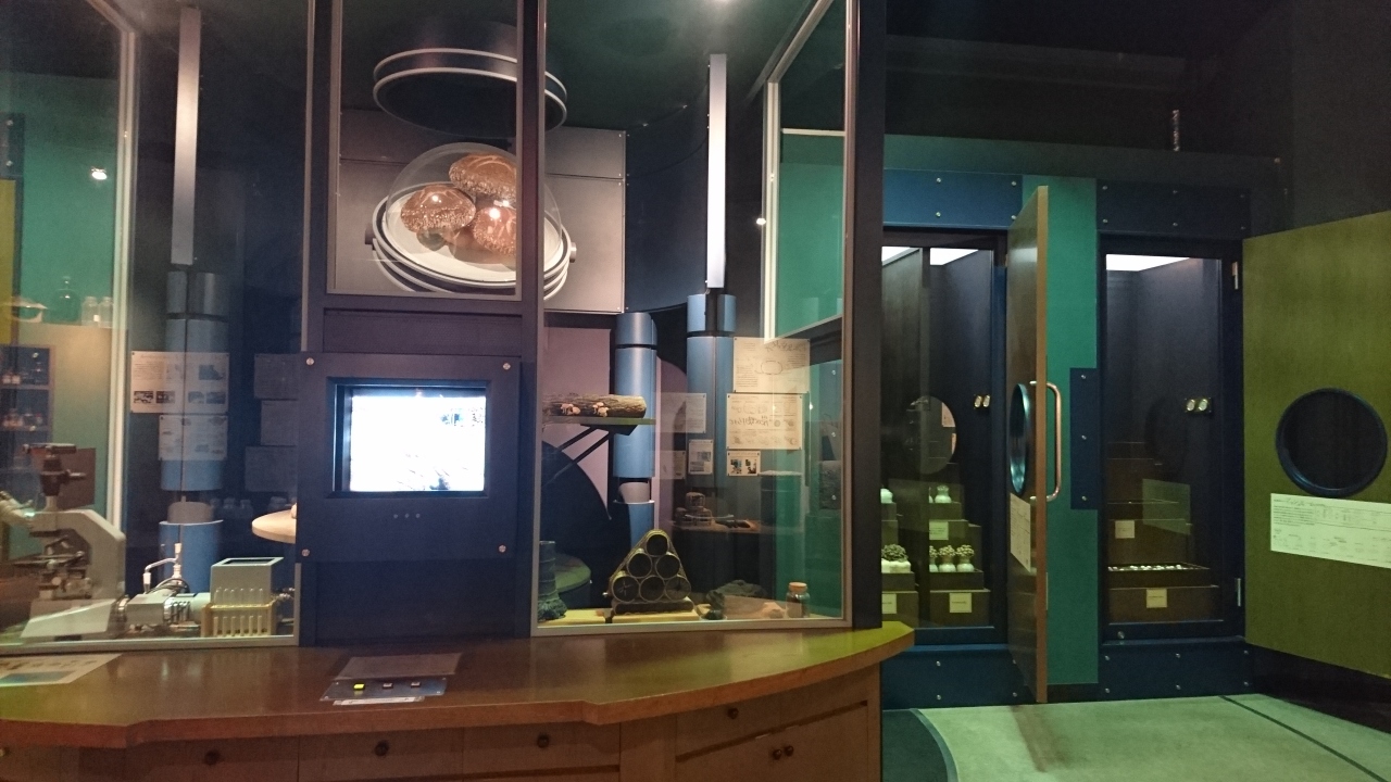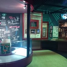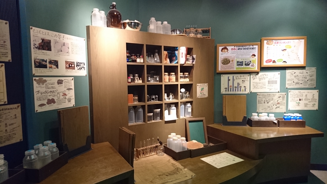 その周りを囲むようにスロープになっていて、各小部屋できのこについて映像が流れたり、本が置いてあったり、きのこを使ったが料理のサンプルが置いてあったり。