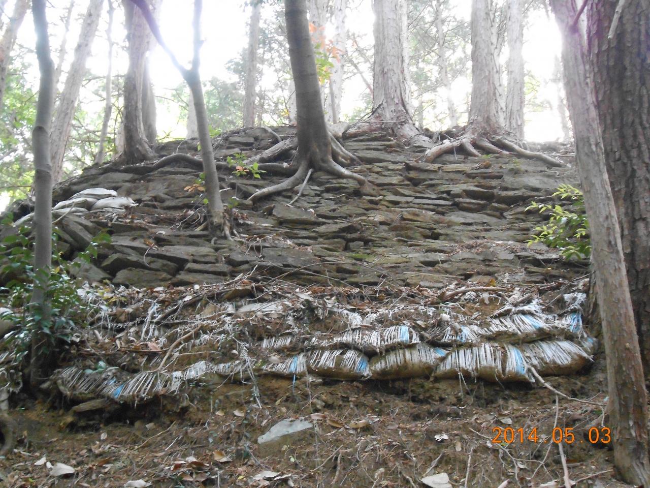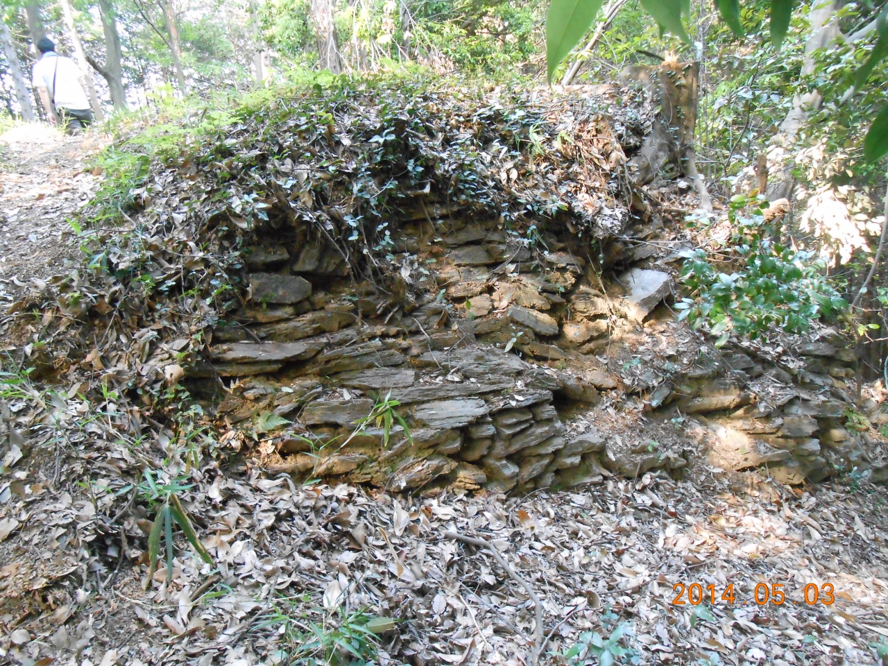 関東で石垣は珍しいです。この山全体が岩山ようです。ただ、石がひらべったい。