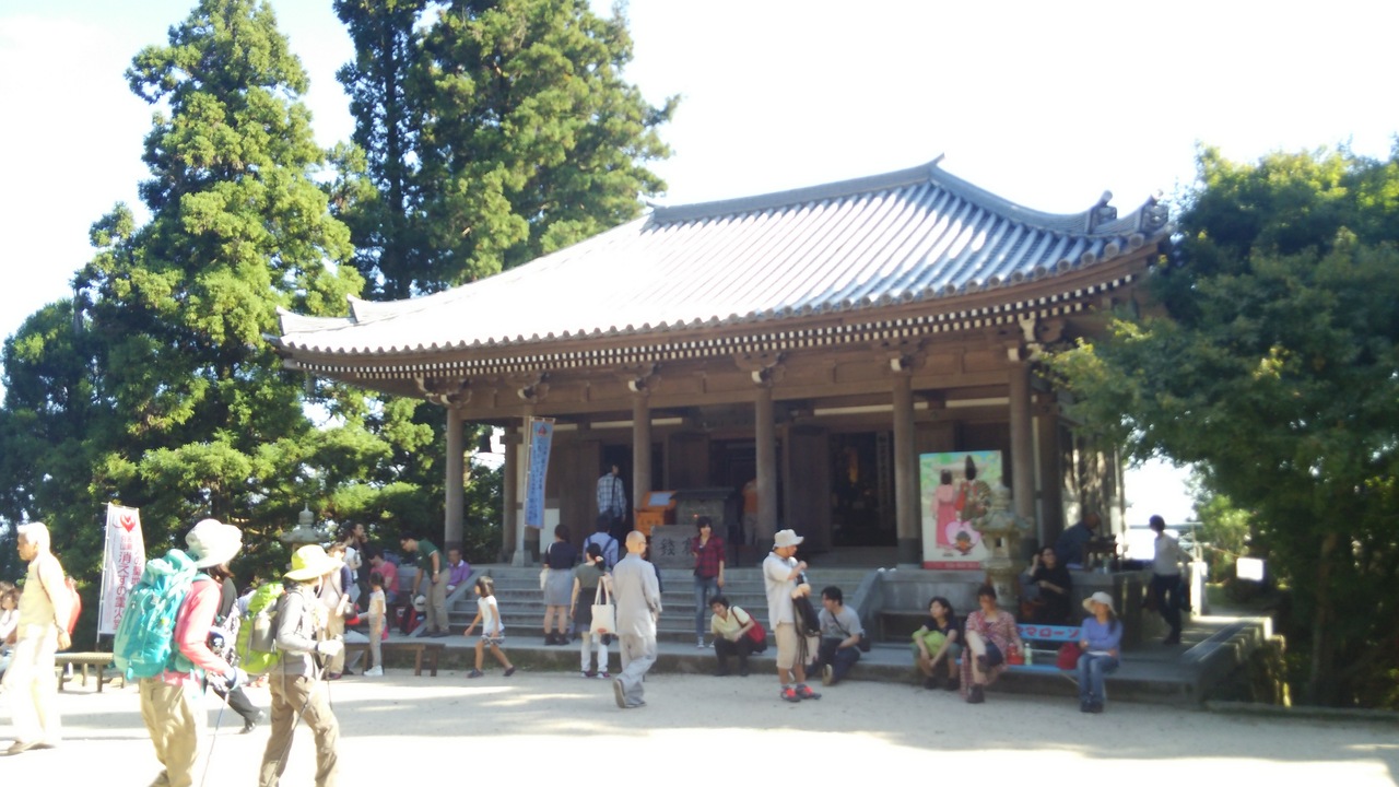 約一時間、急な坂道を登ってたどり着いたので、喜びはひとしおでした。眺めもよく、狭い山頂に、本堂と霊火堂があり、少し行くと自然のトンネルのくぐり岩もありました。弘法大師が修行したころに思いを馳せました。本堂には不動明王がまつってありました。