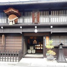 飛騨古川のメイン通りである壱之町通りにある酒蔵です。銘酒「蓬莱」の造り酒屋で、出格子に家紋の付いた紫暖簾、軒の杉玉など、歴史ある酒蔵を感じさせています。建物は国の有形文化財に指定されており外観観光でも十分楽しめます。