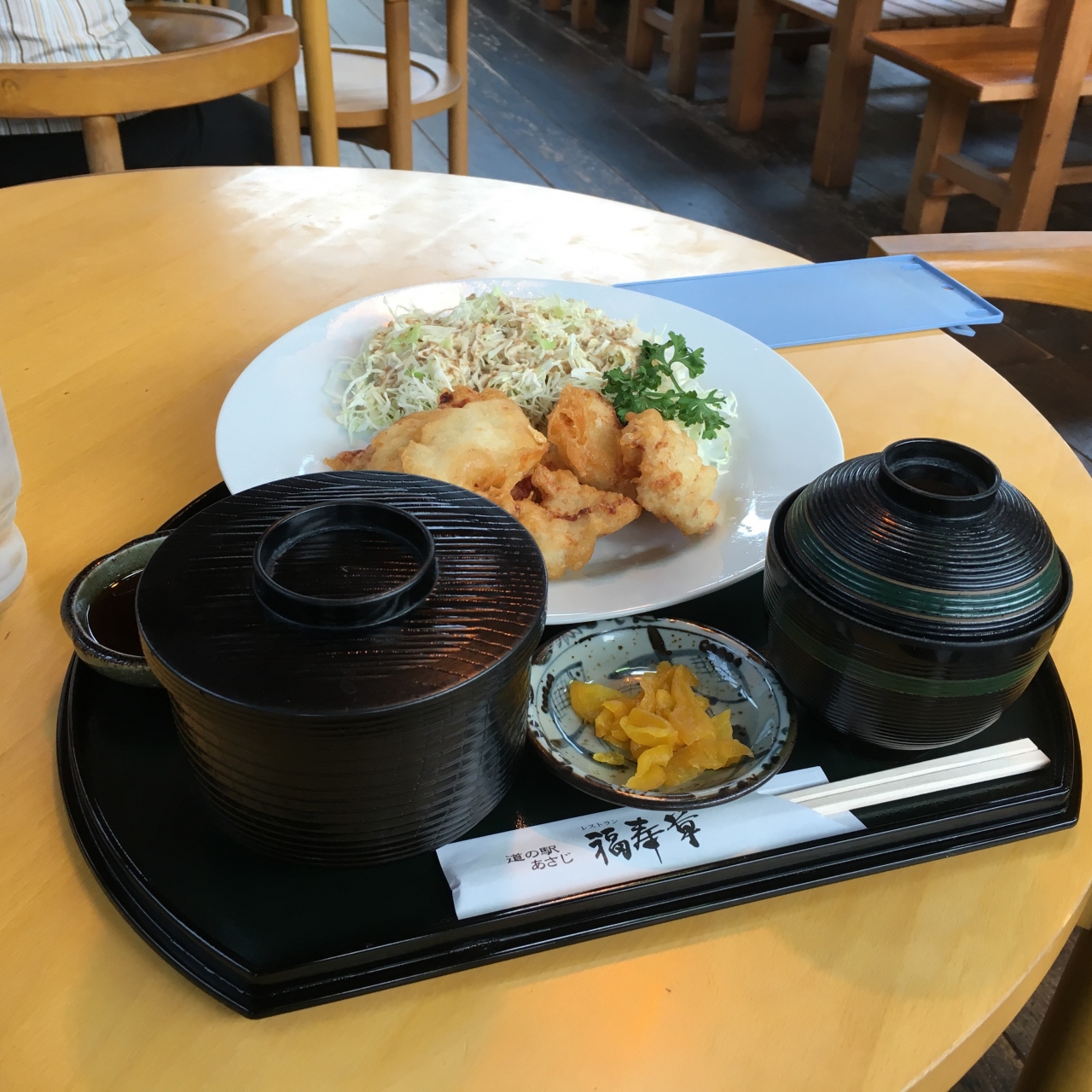 道の駅あさじにあるレストランです。平日に訪れましたが昼時とあって非常に賑わっておりました。でも客席数は多いので待つこと無く着席できました。観光客以外に地元の方も大勢利用しているようで、料理も早く出てきたし安価で便利な存在です。鶏の唐揚げを頼みましたが熱々で柔らかくて美味しかったです。