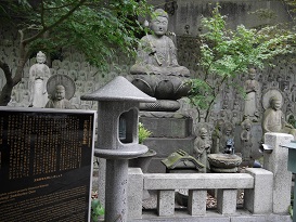 八百屋お七と関わりの深い吉三がお七の処刑後身を寄せ「西運」となった大円寺は目黒駅から行人坂を下り目黒雅叙園の手前に建っています。境内には石仏群や生身釈迦如来、釈迦三尊像など見応え充分のお寺です。近くには西運が建てたとされる「目黒川架橋供養菩薩」が有る。