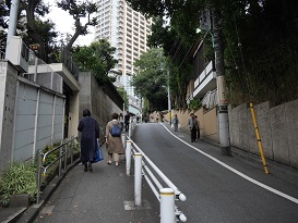 「行人坂」目黒駅から目黒雅叙園までの急な坂道です。途中には西運が目黒川に橋を架けた際に建てたとされる「目黒川架橋供養菩薩」や見応え充分の石仏群が立つ「大円寺」が有る。下りは良いが登りはかなりキツイので遠回りになるが権之助坂を使う方が楽だと思います。