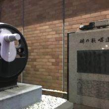 碑の上に小さな鉄道模型があるのに注目してほしいです。