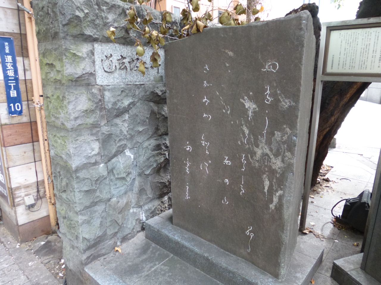 何度も通っている道玄坂ですが、その一画に「与謝野晶子歌碑」があることを初めて知りました。道玄坂上交差点のマークシティ側の角に「道玄坂道供養碑」に並ぶように設置されていました。文字は読みづらいですが、すぐ脇には案内板が設置されており、その背景について知ることが出来ます。通勤途中に、不意に渋谷の歴史のひとつを知った気分でした。