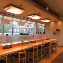 海浜幕張駅前に隣接してるペリエ海浜幕張内にあるお蕎麦屋さんです。本格的なお店ではなく、低価格の駅そばなので、気軽に利用するようなお店です。オーダーはまず食券を購入し、その食券を提出するスタイルです。厨房の奥に席があり、椅子付きなので座って食べることが出来ます。窓が大きく、昼間は採光が良くてとても明るい店内でした。この手のそばもそんな明るいところで食べると、なんだか普段食べている駅そばよりも美味しく感じました。