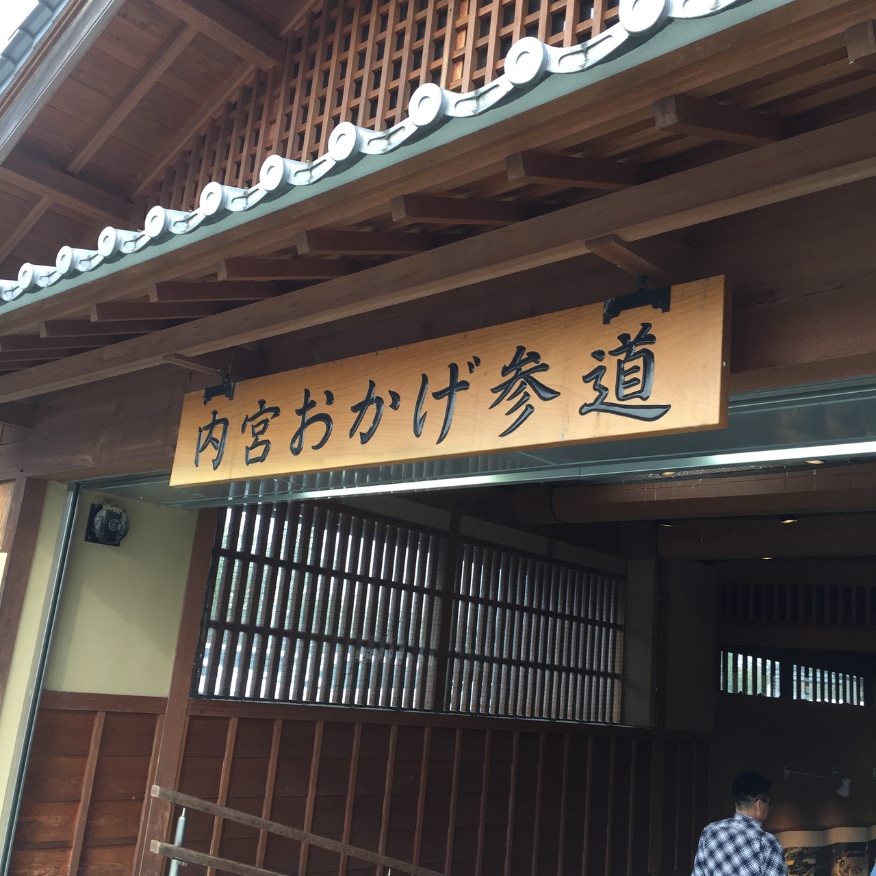 市営駐車場からおかげ参道を抜けて行きました。短いですが、階段を下りるところから当時の様子などの説明が展示してあります。じっくり見るには人がたくさんだったので見れませんでしたが、空いている時にじっくり見ながら通り抜けてていくのも良いかと思います。