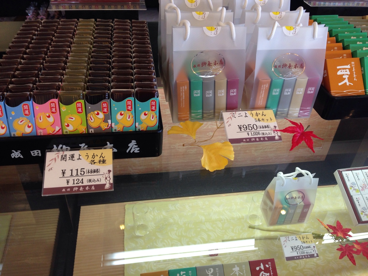 成田山参道 羊羹の米屋さんが有名ですが、こちらも多種の和菓子があって負けておりません。リーズナブルな価格で、遊び心のある商品からおしゃれなパッケージのものまでバラエティ豊か。