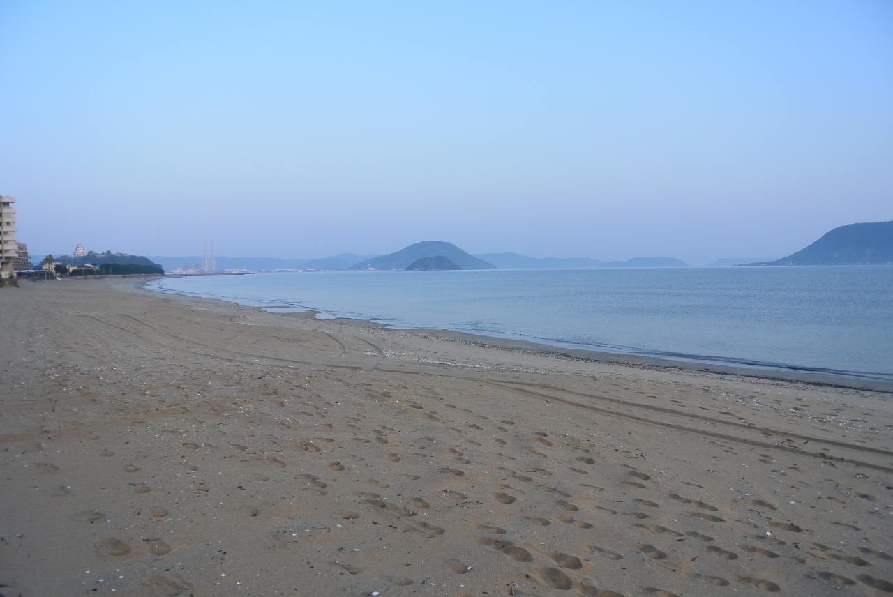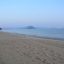 唐津城の東側、虹の松原西側にあたる砂浜の海水浴場です。波はおだかやで砂のきめも細やかな美しいビーチです。波はほとんどありません。遠くに見える高島もきれいな形です。3月に海岸を散歩しましたがとても気持ち良かったです。朝日、夕陽ともにお薦めです。