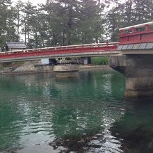 傘松側から天橋立を歩き、廻旋橋に到着。