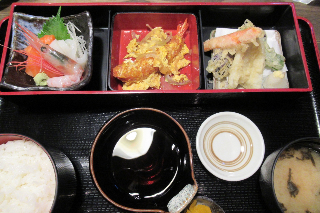 お得感のある「彩り御前」「旨い丼」それと外の水槽からさばいてくれる「ツブ刺し」を注文しました。