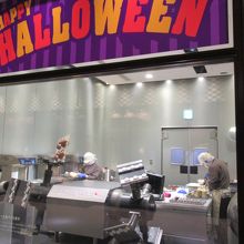 チョコレートの歴史の展示や 製造過程をガラス張りで見ることができます。