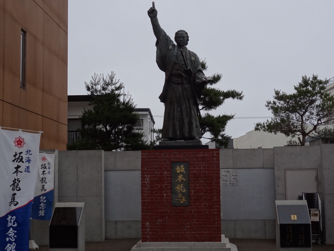 函館市内をふらふらと歩いていたら偶然見つけました。まさか北海道で龍馬の銅像に出会えるとは思いもしなかったので、とても驚きました。どうやら龍馬は蝦夷地に渡る事を夢見ていたらしいですね。そうした縁でこの場所にできたとか。龍馬の意志が今も消えていない証のようなものですね。