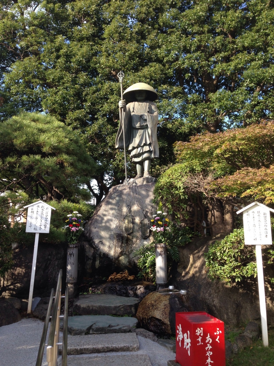 弘法大師さまが お遍路にあたった時のお姿の像です。平和を願い各地を回られた弘法大師さまにそのご利益を頂く為に 献水ができます。平和を思ってくれていた大師様に感謝も込めて…そしてその健脚にもあやかりたいものです。