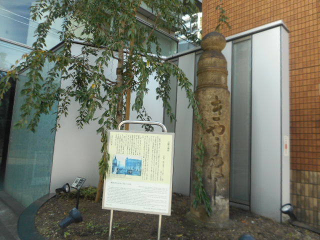 日本橋から銀座に行く道すがらの京橋のとんがり頭の交番のところに鎮座する石柱で、その脇には由来を表示してあります。あまり目立たないようですが、外国観光客が足を止めて、写真撮影をしていたので、自分も撮影しました。
