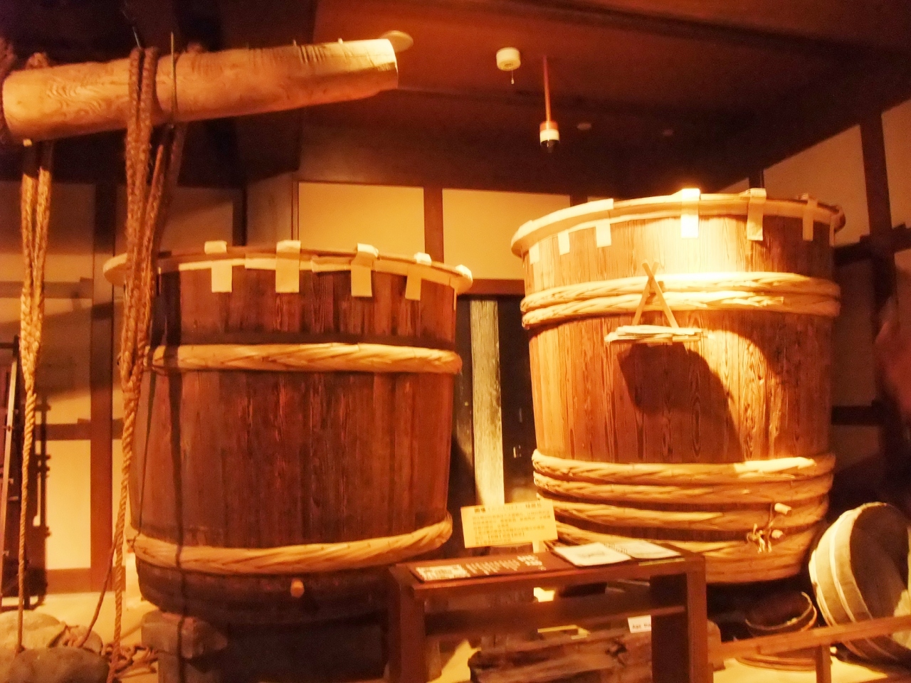 ここでは酒造りの原点を知ることが出来ます。国指定重要有形民俗文化財に指定の菊正宗の酒造展示室には、酒造りに使われた色んな用具類が展示されています。私たちは説明を聞きながら見学してまわりました。とても興味深かったです。