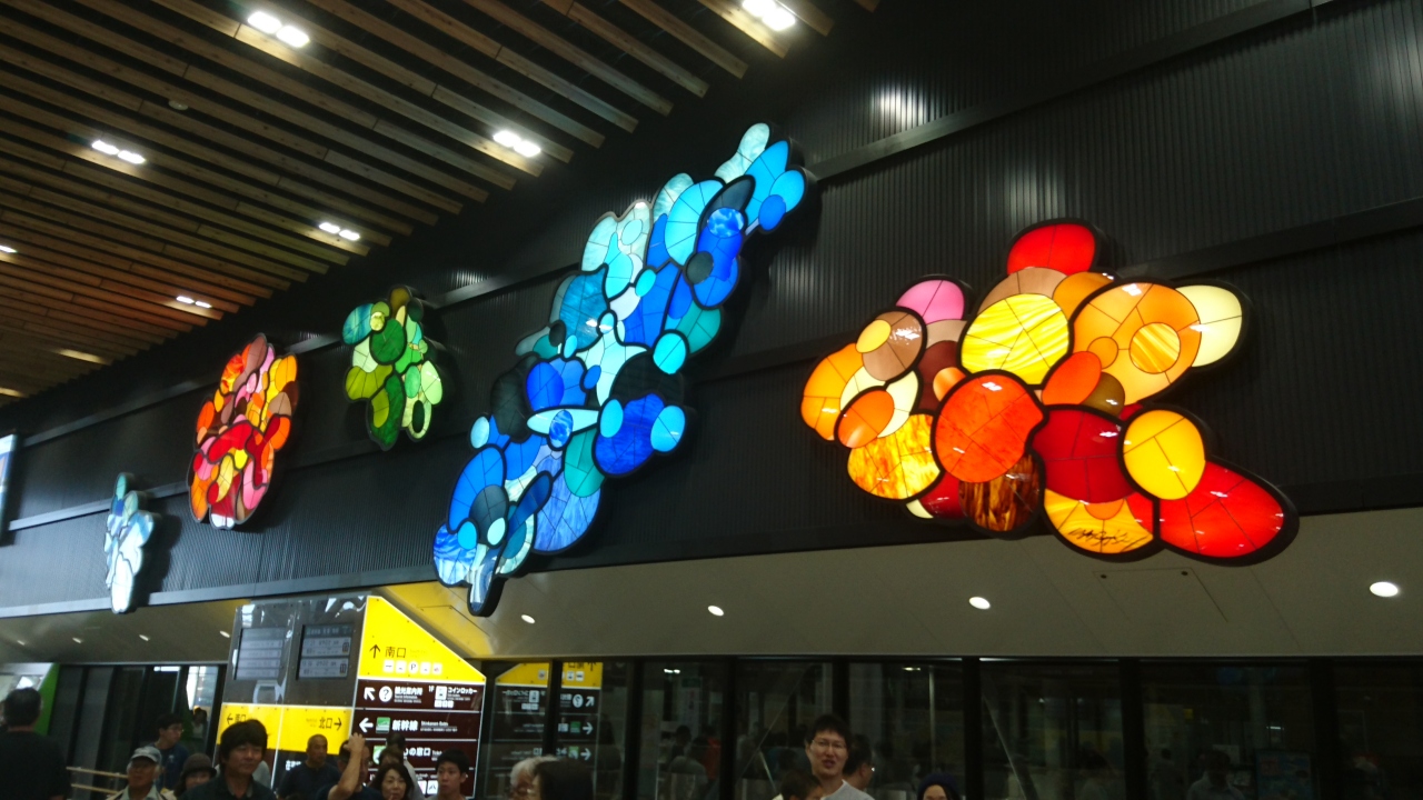自由通路は上から新幹線を見ることができたり、壁面にはガラスアートがあるなど自由通路も見どころが多いです。外観は黒を基調とした駅舎と白い大きな柱が印象的でした。また、駅舎の前にある東北・北海道新幹線と青函トンネルを意味するトンネルも見どころの一つだと思いました。