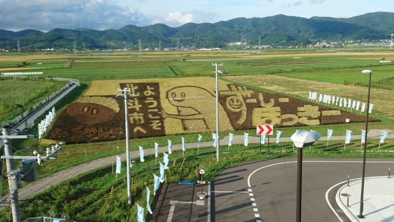 そして、特に印象に残ったのは自由通路から見えた田んぼアートです。この時は初めて田んぼアートを生で見たのでとても印象に残りました。