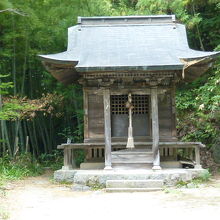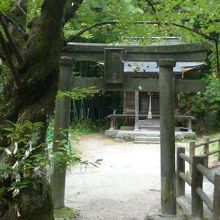 石鳥居をくぐると参拝客も無くひっそりとしていました。小さな社もたくさんの千社札(せんじゃふだ)が貼ってあります。