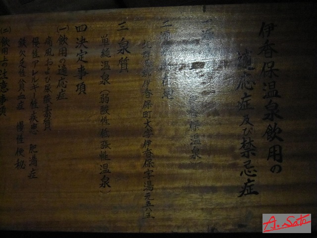 伊香保神社の裏手から露天風呂に向かう途中の非常に細い道路を登って行った左側にあります。伊香保温泉は茶色いのですが、手に救った量では色の識別はできません。ただ、アルカリ?酸?鉄分?で決しておいしいとは言えません。便秘症に効果があると説明書きに書いてありました。飲みすぎ注意ですね。