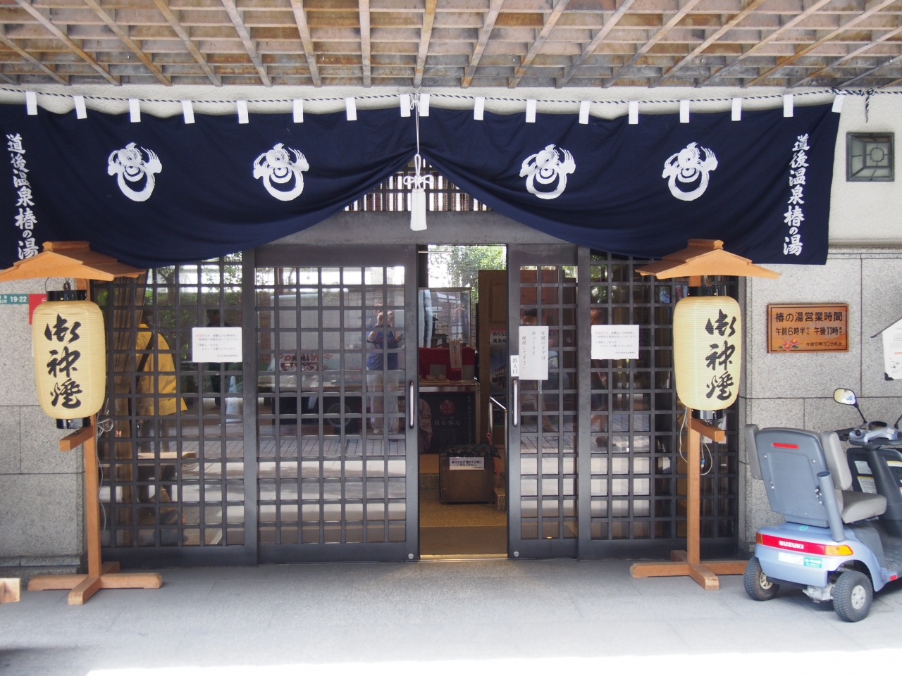 道後温泉のハイカラ通りから少し横道に入ったすぐに椿の湯があります。入浴客は地元のかたがよく利用する温泉のようです。湯質は本館のお湯と同じなのでゆっくり入浴できるこちらっはいい。入浴料も少しこちらが安いです。